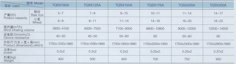 TQSX型A系列吸式比重去石機(jī)技術(shù)參數(shù)